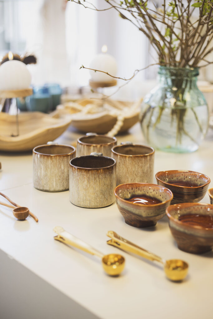 När man kliver in i butiken möts man av en somrig och avslappnad atmosfär. Naturmaterial som snäckor, jute och strå sätter tonen, och känslan är mer som att komma hem än att stiga in i en butik.